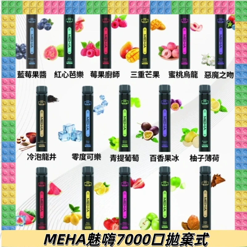 MEHA電子煙新款 MEHA X BAR 7000口魅嗨小黑條拋棄式電子煙提供 16 款風味滿足你的口感需求,內建 650mAh 可充電電池 + Type-C充電介面,成就高達 7000 口的怪獸級續航,隨時滿足您的渴望。